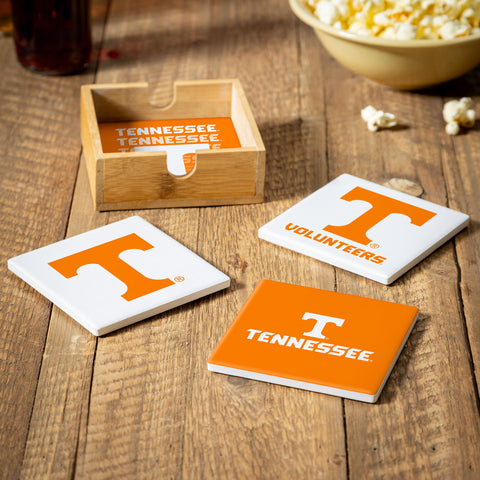 Tennessee Volunteers Coaster Set 4 Piece with Wood Caddy